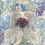 イラストのテーマ「追憶と葬送」と、今までの活動を総括する意味を込め、フィルムに過去の作品をネガフィルム風に合成しています。